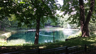 Nous nous dirigeons donc à pied vers le parc Lafontaine : par cette chaleur, la fraicheur des arbres ne sera pas de refus. Le ciel menaçant et les chaleurs d'orage ont un peu dissuadé les nombreux montréalais qui l'assiègent d'habitude, et une drache à mi-parcours leur donne raison. Qu'importe, nous avons parcouru le parc, quelques rues du Plateau, les maisons à escaliers n'ont déjà plus de secret pour mes parents ; nous pouvons rentrer en paix !