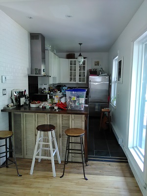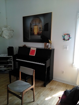 Après une heure de transport nous arrivons à Papineau, rue Sainte Catherine, rue Champlain, et nous voici à pousser la grille en fer forgé de notre logement de 5 jours. C'est un mélange un peu étrange de beaucoup de choses, mais il y a un beau plancher et un piano !