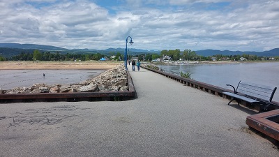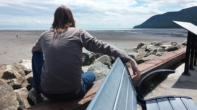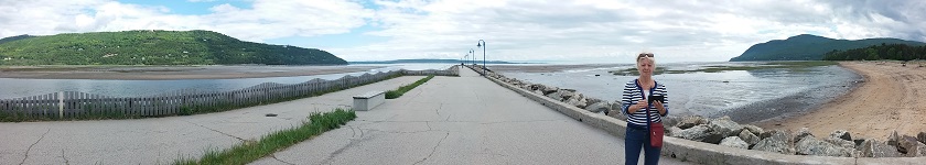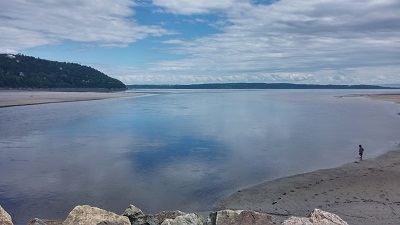 Étape conseillée dans la région : Baie-Saint-Paul. Nous nous arrêtons dans ce village très touristique, où restaurants et galeries impayables d'artistes incongrus se disputent la devanture. Pas vraiment convaincus, on finit par quitter le centre-ville et aller au bord de l'eau. Après tout, ça s'appelle la baie !