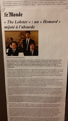 Ce soir, le « Lobster » nous marque. Quel film ! Et quel réalisateur… L'humour, l'élégance, la subtilité et en même temps une violence… Des images qui restent dans la tête et des questions qui perdurent bien après le retour à la maison. Le final… brrrrr… Vraiment, une merveille ! Il serait dommage de spoiler le film, vous irez le voir vous-même… personnellement, j'ai rempli deux pages de cahier d'activités à faire en classe à partir d'une telle création ! De belles références, un sujet universel, de l'originalité et vraiment… beaucoup d'humour !