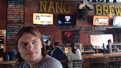 La drache passée, on décide d'approfondir la découverte du quartier et on tombe sur plusieurs "breweries" à l'air sympathique. Feraient-ils de la bière dans le coin ? Ho, belge impie qui ne goûte que son petit pays... Les bières sont TOP ! Des IPA savoureuses, des ambrées chaleureuses, des laggers épicées, des ales d'Halloween (au potiron !)... une carte à faire pâlir le Moeder lambic. Au Nano Brew on déguste notre premier burger cent pour cent américain. Un Fun guy pour Paul (Bleu cheese, mushroom duxelle, steak sauce, onion ring, and greens) et le hamburger de la maison pour moi (céleri vert et pommes pochées au bourbon). L'année s'annonce bien !