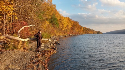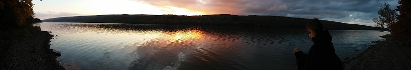 Chanceux, comme toujours, nous voyons vers 15 heures des rayons de soleil apparaître. Direction le Hemlock lake, une des deux réserves d'eau potable de la ville de Rochester, cadeau de l’époque glaciaire.