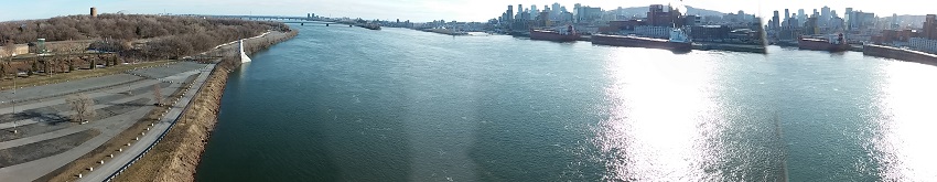 Rebroussant chemin, nous quittons la digue, retournons sur Notre-Dame et traversons grâce à un autre pont un maigre bras du Saint Laurent, chez nous déjà un fleuve à part entière !