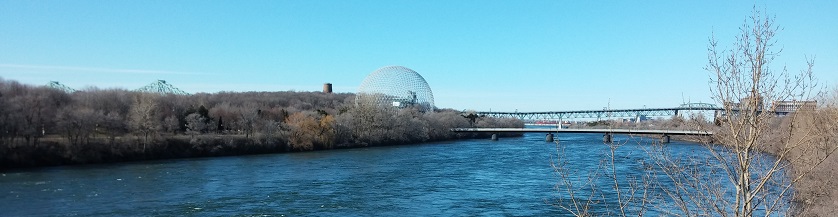 Sur les îles, des aménagements qui datent de l'expo universelle et des jeux olympiques. Sur Sainte Hélène, on trouve la fameuse Biosphère, musée de l'écologie aujourd'hui, pavillon des USA en 1967. Pas grand chose de commun avec la petite île que Champlain découvrait en 1611 et nommait d'après sa femme. Aujourd'hui, après 28 millions de tonnes de remblai pour la rendre accueillante pour 60 pavillons représentant les 4 coins du monde en '67, c'est un mélange entre force de la nature et Disney Land, entre sensation de liberté et haut grillage protégeant le circuit automobile…