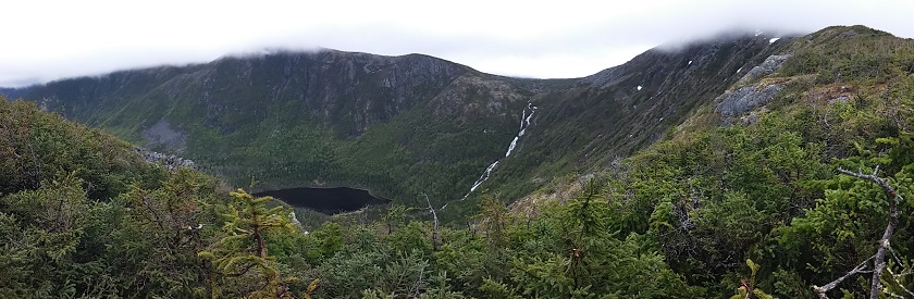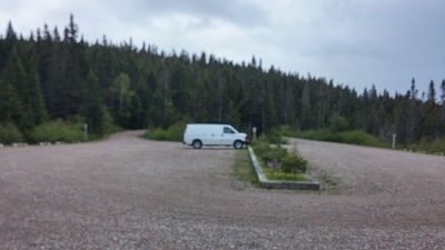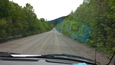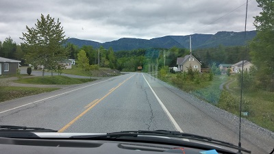 Nous reprenons donc la route. Au revoir Sainte-Anne-des-Monts que nous ne regretterons pas beaucoup, au revoir le Saint-Laurent, que nous regretterons bien plus. Il est temps de quitter le fleuve et de nous enfoncer dans les terres ! Nous avons décidé, malgré le temps gris et maussade, de suivre notre plan et d'aller visiter le parc de la Gaspésie. Gris, gris sont les nuages, mais le paysage est sublime. Après le plat pays, nous sommes vraiment heureux de voir se profiler les montagnes de Gaspésie.