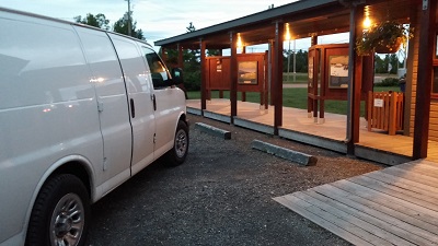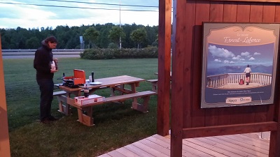 Arrivés à notre étape du jour, New Richmond, nous découvrons à l’entrée de la ville le plus bel et le plus perdu des offices du tourisme où on soit allé. Paul branche nos ordis, côte à côte, à la prise qui doit servir au jardinier.