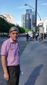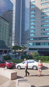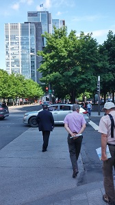 Maintenant, direction la place Victoria, le World Trade Center et le RES. Et là, c’est papa qui nous guide : il vient de retrouver les bureaux de Québecor ! Une petite conversation avec le garde, un saut pour admirer les peintures que M. … expose et c’est reparti pour la suite du programme : direction la vieille ville.