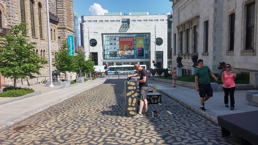 Nous continuons alors notre périple vers le cœur du Downtown, la place Dorcester où se trouve l’office du tourisme et les grands buildings de la ville. Papa décide d’aller parler avec des garçons de café qui se font prendre en photo devant une vieille pancarte de saucisse européenne, avant de se rendre compte qu’il s’agit d’hommes en costumes pour un mariage… La question "et les saucisses ici…" n'aura jamais de réponse !