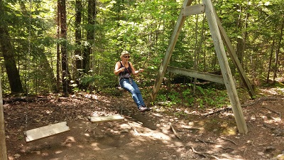 Mais l'aiguille tourne, et les ventres s'impatientent. Nous sommes pratiquement au sommet mais une petite table sous les arbres nous fait de l'œil ! Il y a même une balançoire...