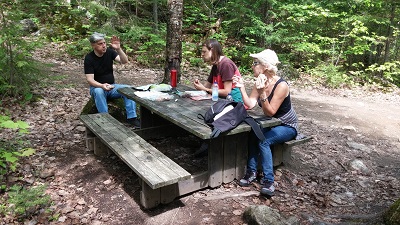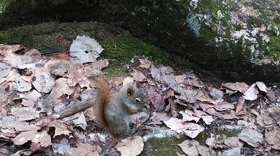 C'est un repas plein de surprises, et après nos deux guides, c'est un écureuil peu farouche, ou affamé, qui vient nous rendre visite. Enfin... à notre table de pique-nique. Un peu taciturne, la conversation est moins abondante, mais par contre quel spectacle !