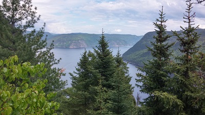 Vendredi 3 juin, petit matin, on profite de la terrasse de France puisque la pluie s'est arrêtée ! Belle vue sur Chicoutimi, qui a des airs de petite ville allemande depuis notre point de vue. P'tit déj et direction le parc du fjord du Saguenay. Ce n'est pas peu dire que Paul et moi attendons ce moment avec impatience !