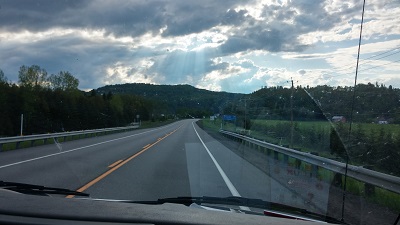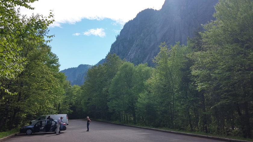 Après des vues incroyables (il faut faire la côte de Charlevoix !!), nous cafouillons un peu pour l'arrivée dans le chalet de Caroline le long du Saint-Laurent à Saint-Irénée. Google Maps a trouvé un « rang » du même nom que le nôtre dans les environs, et nous dirige loin loin dans les montagnes... Hum... C'est là qu'on sort la carte, qu'on oublie un peu la technologie et qu'on fait demi-tour !