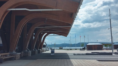Premier arrêt dans un autre arrondissement de Saguenay : La Baie. On profite du wifi dans le centre touristique ultra-moderne-nec-plus-ultra, et on se balade un peu parce que cette petite agglomération est vraiment « cute » et les bâtiments bien conçus. On aime bien quoi !