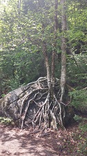 Époustouflant ! Tellement impressionnant que nous décidons de pousser la randonnée un peu plus loin que prévu, histoire de voir, peut-être, le Saint-Laurent. Ça monte, ça descend, ça glisse, et le temps passe. Les miles ont l'air plus longs que d'habitude... Nous n'avons pas le temps de continuer, il y a encore des kilomètres à parcourir jusqu'à la prochaine étape. Nous devons redescendre la vallée de Charlevoix en direction de Québec. En route !