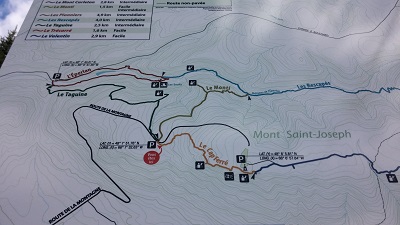Nous prenons finalement la route jusqu’au mont Saint-Joseph et après un petit détour, la camionnette gravit courageusement la pente. On parque la voiture, c'est parti pour l'ascension vers le sommet.