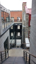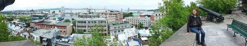Nous longeons le mur de la citadelle vers la falaise, pour voir quelle vue on aurait de ce côté-là. Un kiosque nous accueille le temps de lire un peu ce que disent nos guides respectifs sur la ville. Puis, nous empruntons la promenade des gouverneurs : une passerelle longeant le pied des fortifications et surplombant la falaise, jusqu'à la place d'Armes, au pied du Château Frontenac. La vue est belle et les photos nombreuses.