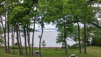 Pendant ce temps, j'ai vérifié sur Google Maps qu'il y avait deux ponts : seul celui de la route semble répondre au nom de pont de Québec ; celui de l'autoroute serait alors toujours ouvert. D'ailleurs, nous pouvons apercevoir des véhicules y transitant. Nous allons donc tenter de nous rendre à Québec et de visiter la ville une seconde fois quand même.