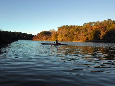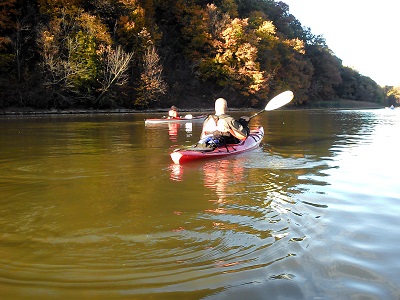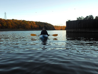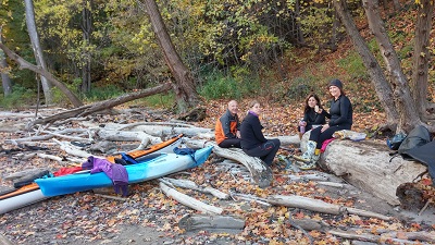 Nous avons ensuite repris les voitures vers un point pratique pour mettre les kayaks à l'eau. Nous voilà tous les cinq, portant les bateaux sur le chemin et nous dirigeant vers la rivière. Après une brève explication, tout le monde à l'eau ! Dans notre chance incroyable, le ciel est bleu. Les quelques nuages du matin se sont dispersés, le vent est tombé et nous sommes dans les circonstances idéales pour notre premier cours de kayak ! Nous allons remonter la Genesee River jusqu'aux chutes de Rochester.