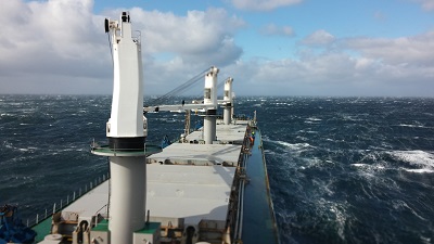 Enfin... c'est beaucoup dire, disons que le cargo n'a plus l'air d'avancer parce qu'en ce qui concerne nos sensations, le tangage du bateau est bien présent !