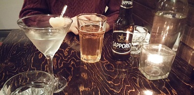 Le serveur, après un certain temps, nous amène nos boissons et là, révélation : un délice ! J'ai pris un mélange de sake et de liqueur de litchi, un ravissement !
