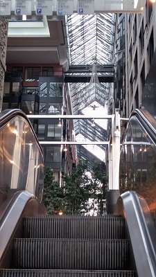 Mais plus j'avance vers l'escalator travaillé, plus je découvre des bouts de ciel bleu au delà des vitres impecables et à plusieurs dizaines de mètres de nous. L'endroit pourrait-il me plaire ?