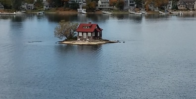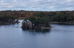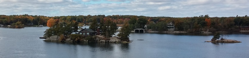 Thousand Islands c'est un coin magnifique du Saint-Laurent, tout parsemé d'îlots. Chacun y a construit sa maison à son goût. Et des goûts et des couleurs...