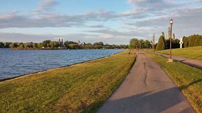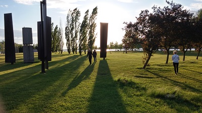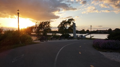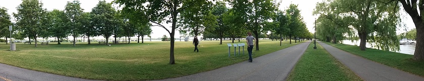 Nous sommes le long du canal, à Lachine. Un grand parc juste à coté de l'appart' nous permet de nous remettre de la route le long des œuvres d'art extérieures. Coucher de soleil incroyable !