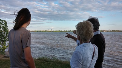 Aujourd'hui, c'est retour vers Montréal. Sur le chemin nous nous arrêtons à Trois-Rivières pour dîner devant les Ursulines. Quelques sandwichs, la vue sur le Saint-Laurent, et une nouvelle copine : une surveillante de l'école des Ursulines qui utilise sa pause midi pour venir chercher un peu de silence et de sérénité devant le fleuve.