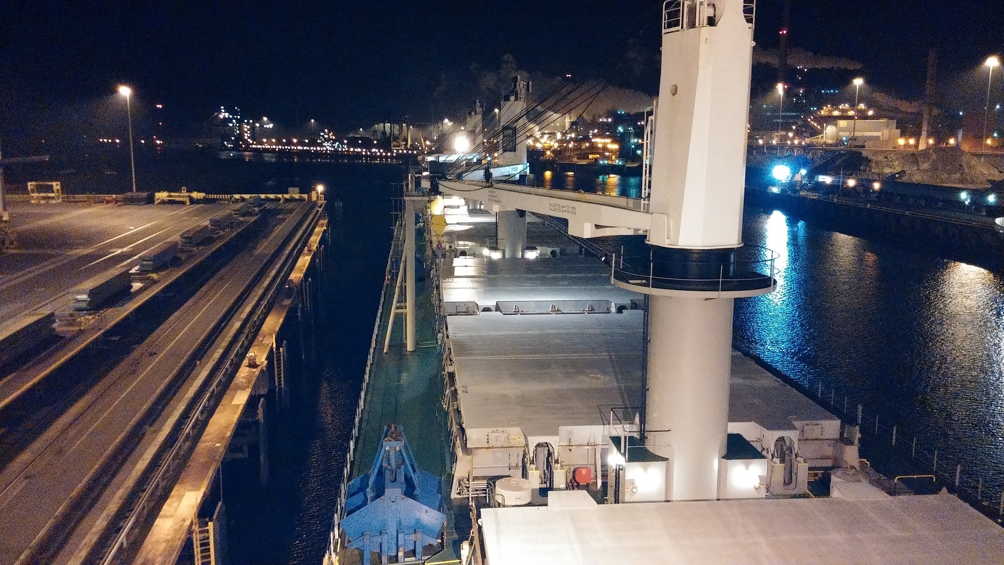 Mercredi soir, après une journée à faire les dernières courses à Ijmuiden (des boules Quies pour la ventilation!) et à rédiger nos articles, voici (enfin) que le bateau semble bouger. Ca vombrit, ça crachotte, ça tremble, ça y est! Ponctuelle (enfin presque), Isa démarre à minuit pile. Des navigateurs hollandais sont montés à bord pour sortir notre 220 mètres du port et expliquer de façon assez directe ("tough" est le mot utilisé par notre ami Tom) à notre capitaine et l'équipage qu'ils doivent faire exactement ce qu'on leur dit! On dirait que nos polis polonais ne se sont pas trop vexés et ont exécuté les commandes puisque comme vous le voyez dans la vidéo, nous avons bien atteint le large. Une vedette rapide est alors arrivée pour reprendre ses marins hollandais. Pour nous la route commençait...
